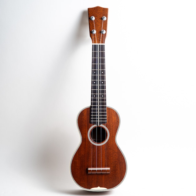 ◆◆◆ こちらの商品は【中古品】です ◆◆◆ 長野県上田市にてギター、ウクレレ、マンドリンを製作しているSUMI工房。鷲見英一さんの作る楽器は国内外のプロミュージシャンやマニアにも愛好者が多く、日本を代表するルシアーの一人です。 今回入荷したのは、かつてSumi工房製ウクレレの中心的存在だったベルシェイプのソプラノウクレレ。このシェイプのウクレレは押尾コータローさんも使用していたことで有名です。 ここ10年くらいはMartinレプリカの人気でほとんど作られることがなくなってしまいましたが、ギターでいうドレッドノートのような大きめのボディ、14フレットジョイントでソプラノとコンサートの中間的なスケール(約363mm)という仕様で、ソロスタイル向きのウクレレとして人気を博していたモデルです。 ボディ幅はMartinのソプラノと比べて2cm広く、厚みも5mmほど厚くなっています。容量が大きくなっている分、ソプラノとは思えないほどの豊かなボディ鳴りを感じられます。長めのスケールはピッチの安定性が向上し、音の伸びが良くなり、音にハリが出ます。Martinレプリカよりもよりソロウクレレに向いた仕様になっています。 ボディには良質なホンジュラスマホガニーのトップバック1ピース。ネックもホンジュラスマホガニーで、指板はエボニー、ブリッジはローズウッド。マホガニーらしい優しくふくよかな鳴り、豊かな音量、厚みのある低音、粒だちの良い発音、コロコロと素朴で温かみのある音色。ネックが握りやすく、弦高も低めでとても弾きやすいです。 装飾も美しく、ロゼッタは白黒セル、トップとバックのボディパーフリングにも白黒セル、バインディングはメイプル。一般的なアイボロイドではなくウッドバインディングを巻いてあるのは、長年使用しても変色したり割れたり劣化しないためです。 ペグはUPTのシルバー、ホワイトボタン。指板にはメイプルの指板バインディングとダイヤモンドインレイ。ヘッドにはSumiロゴのインレイ(白蝶貝)とメイプルのバインディング。 製作から10年経っているとは思えないくらい使用感が少なく、全体的に綺麗です。弦高など楽器としてのコンディションも良好。時間が経ったことで木材もほどよく枯れていて、ボディがとても良く響きます。自信を持ってオススメできますが、あくまでも中古商品であるということをご理解の上ご注文をお願い致します。 ◻︎◻︎◻︎ 買取後に実施した作業 ◻︎◻︎◻︎ ・弦交換 ・指板オイルメンテナンス(クリーニングと保湿) ・フレット磨き ・ペグトルク調整 ・弦高チェック(問題なし) ・全体のクリーニング ◆◆◆ ご購入前に必ずご確認ください ◆◆◆ ・ボディ表板にごく細いスクラッチが1箇所(ほぼ気にならないが光の角度によって見える) ・ボディ表板に使用に伴うツヤ(ほぼ気にならないが光の角度によって見える) ・わずかにトップ落ちあり(ほぼ気にならないが光の角度によっては歪みが確認できる) ・弦高は12フレット上で ・約2.0mm(1弦側)・約2.2mm(4弦側) ・中古品は保証対象外、基本的に返品不可です(気になる点は購入前にお気軽にご相談ください) 【スペック】 サイズ:ソプラノ(14Fジョイント) 全長:560mm ボディ最大幅:180mm ボディの厚さ:65mm ボディ材:ホンジュラスマホガニー単板(トップ&バック1P) ネック:ホンジュラスマホガニー 指板:エボニー ブリッジ:ローズウッド ポジションマーク:ダイヤモンド ヘッドインレイ:Sumiロゴ(白蝶貝) ローゼット:白黒セル バインディング:メイプル(ボディ裏表、指板、ヘッド) パーフリング:白黒セル ナット&サドル:牛骨 ペグ:GOTOH UPT シルバー フレット:14Fジョイント/19F ナット幅:約36mm スケール:約363mm 塗装:ラッカー(半艶) 弦:ghs ブラックナイロン シリアルナンバー:14921(2014年製) ケース:セミハードケース ORCAS OULC-1(BLACK)