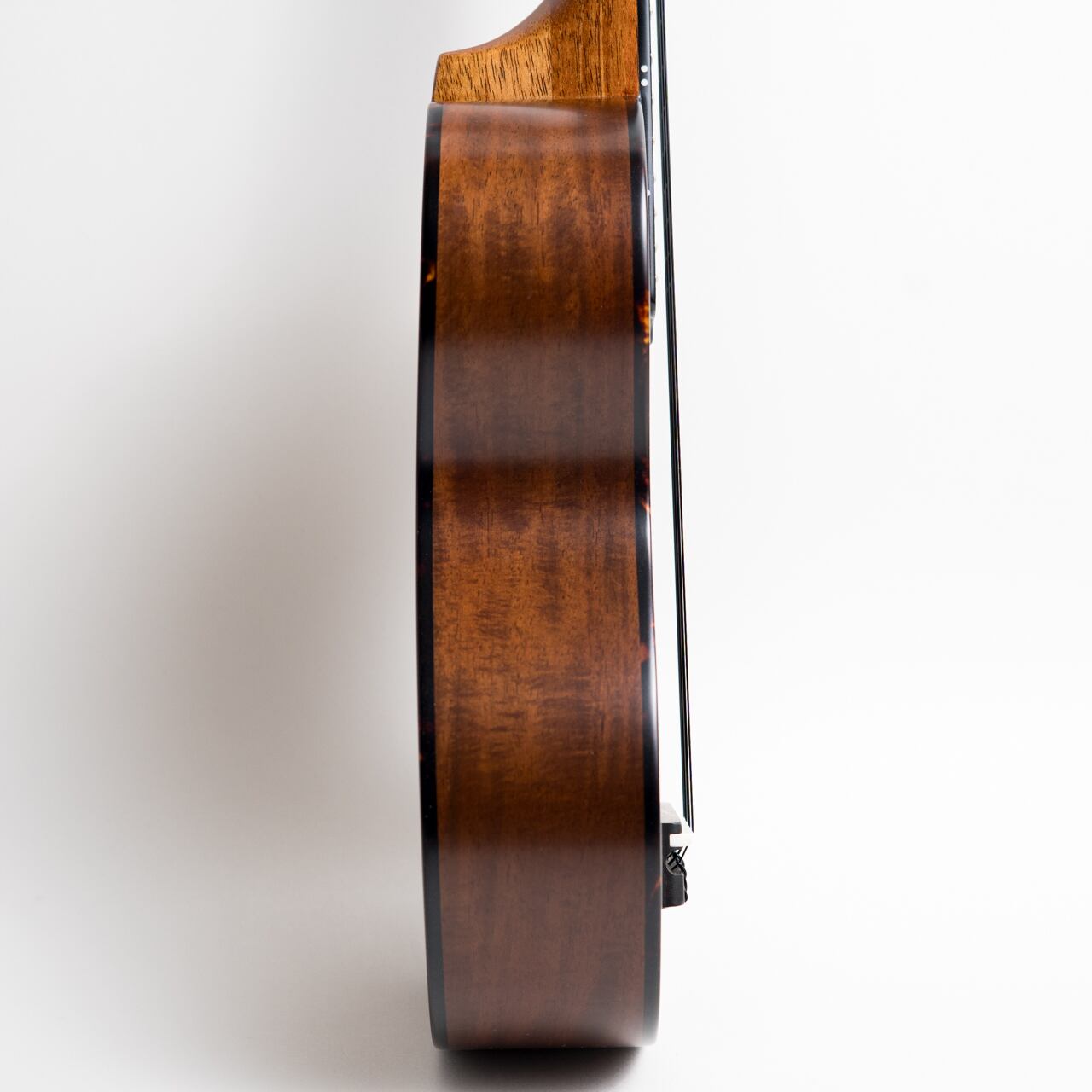 セイレン独自の味付けとしてブリッジをボディエンド側に寄せることで、このサイズのウクレレとしては驚くべき音量とサスティーンを実現しています。ソプラノサイズ、ソプラノスケールでありながら、ソロウクレレでも充分に満足のいく音色が出せるのが本モデルの特徴です。