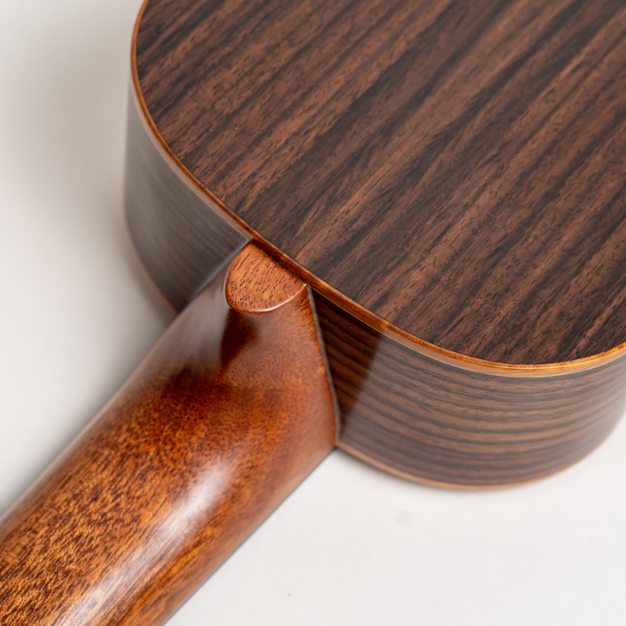坂井さんはウクレレ製作に非常にストイックに取り組まれていて、楽器にもそれがとてもよく反映されています。弾き手に寄り添ったこだわりが随所に散りばめられており、弾きやすく、音が良いだけでなく、細かいところまでしっかりと丁寧に製作されたとても美しい楽器です。