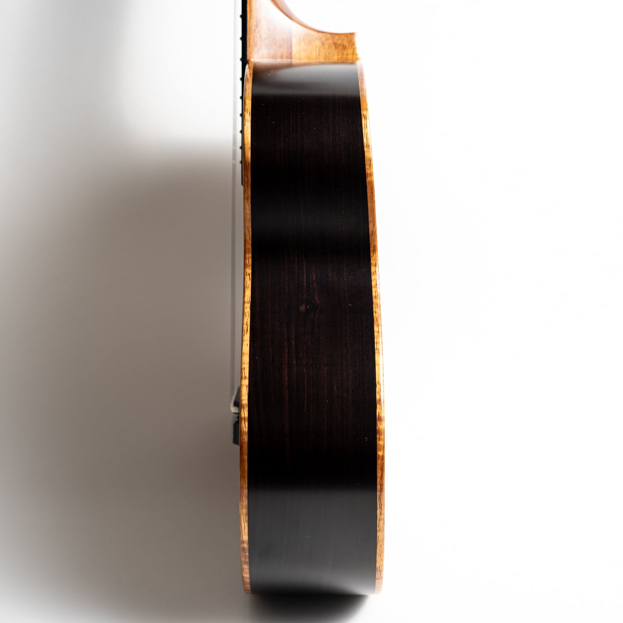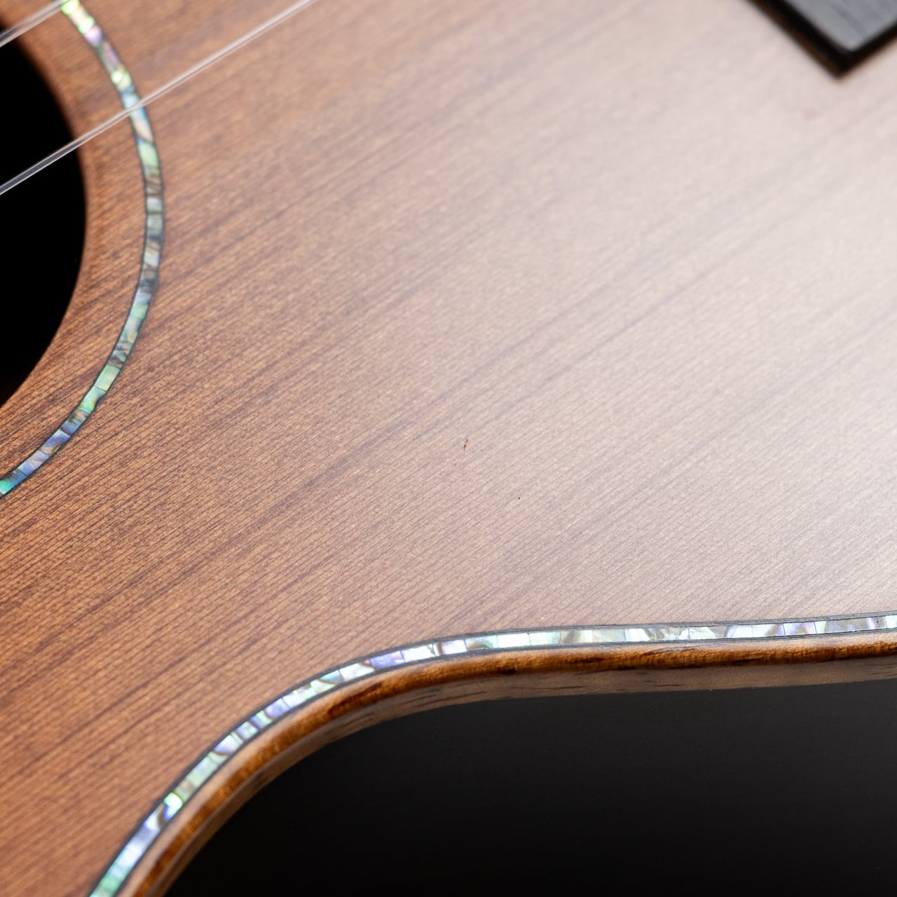 こちらのウクレレはシンカーレッドウッドと呼ばれる、100年以上も水底に沈んで空気に触れないまま熟成された貴重なレッドウッドをボディトップに、「神の木」とも呼ばれるアフリカンブラックウッドをボディバックに使用したテナーウクレレです。