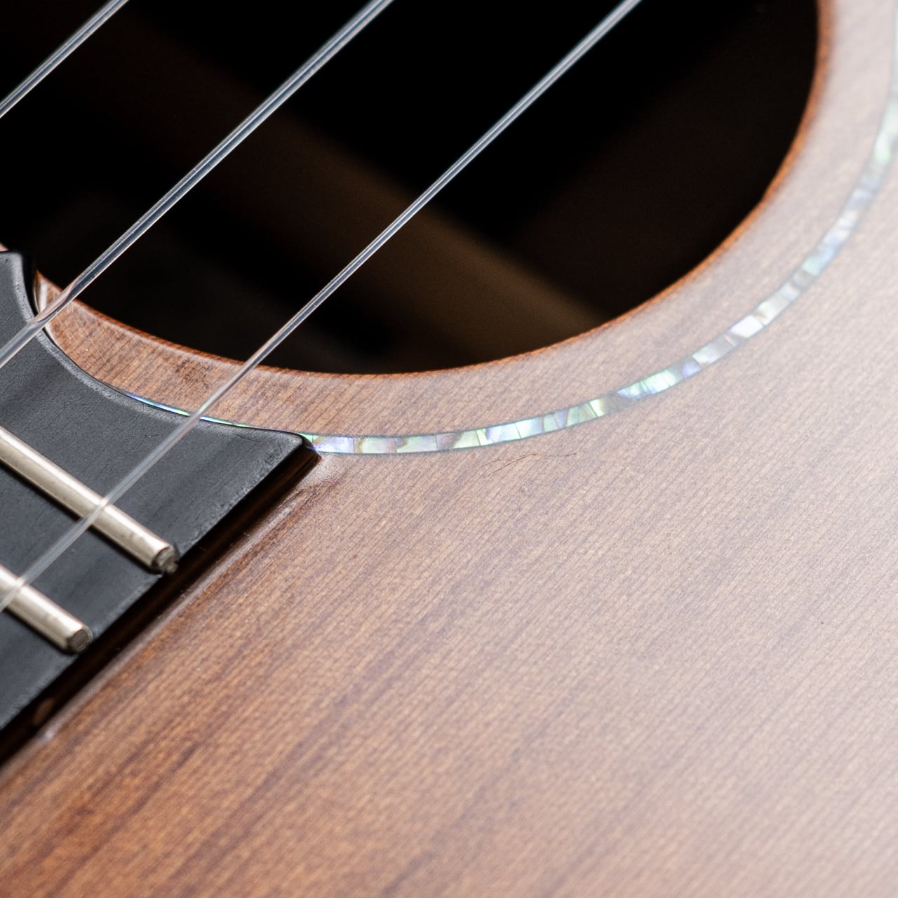 力強くハリのある音色でありながら、音の立ち上がりはとても繊細で柔らかい印象を受けます。激しく弾いたときと優しく弾いたときでこれほど音色の振り幅の大きい楽器はなかなかありません。とても表現力の豊かなウクレレだと思います。