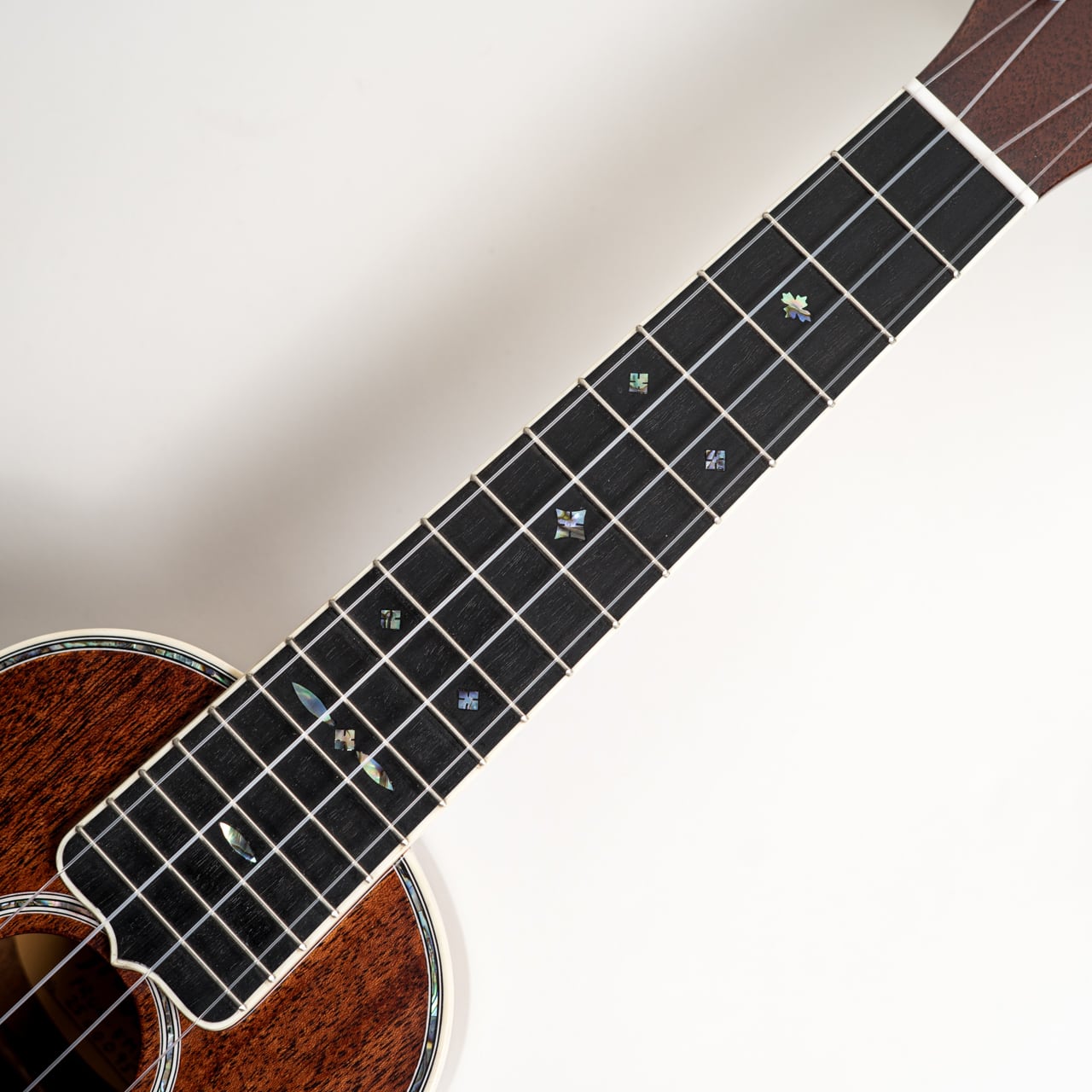 特にインレイの技術は抜群で、SUMI工房在籍時から精巧で美しいインレイを数多く手掛けてきました。インレイに注目が集まりがちですが、彼の作る楽器は演奏性も音色も素晴らしいです。