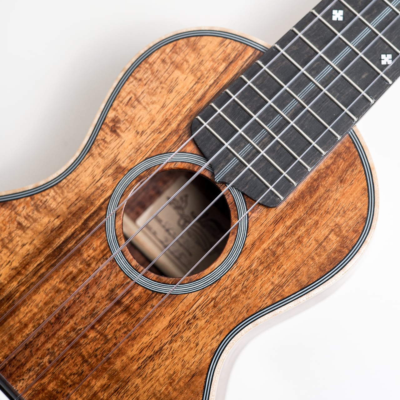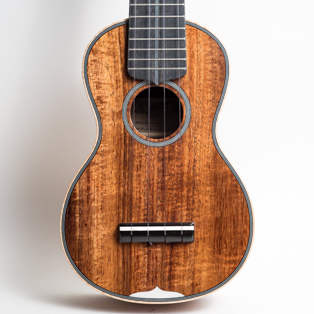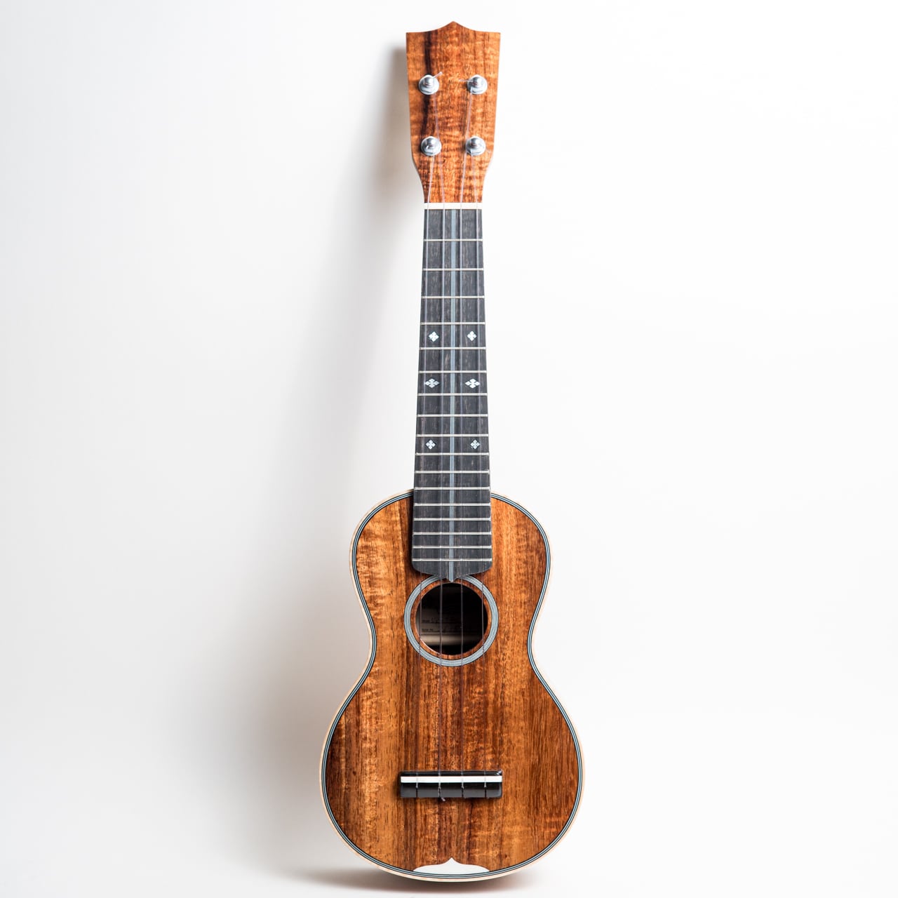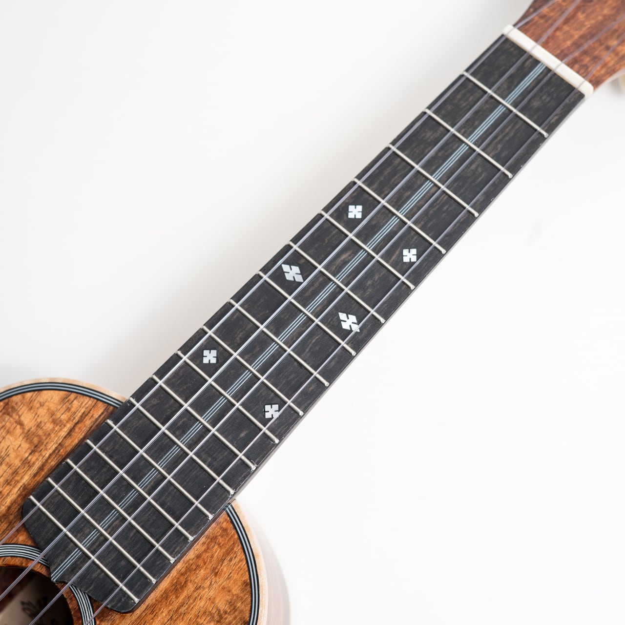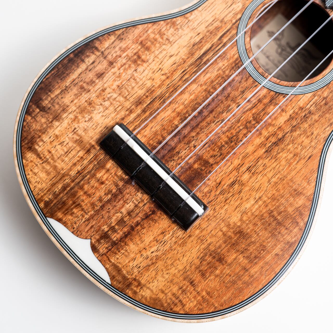 今回入荷したウクレレは、美しい杢の出たカーリーハワイアンコアをボディに使用し、トップバックには贅沢に1ピース材を使用した豪華仕様の3Kです。ネック材は王道のホンジュラスマホガニーを使用し、指板&ブリッジは音質・耐久性ともに間違いないエボニー。