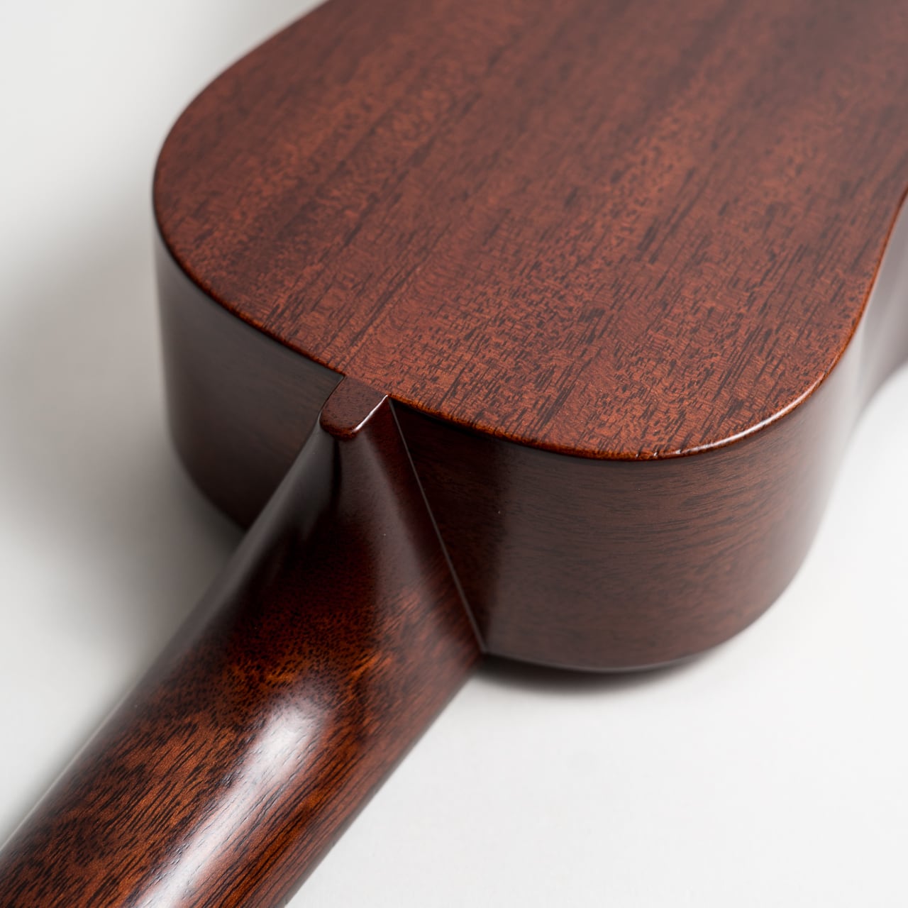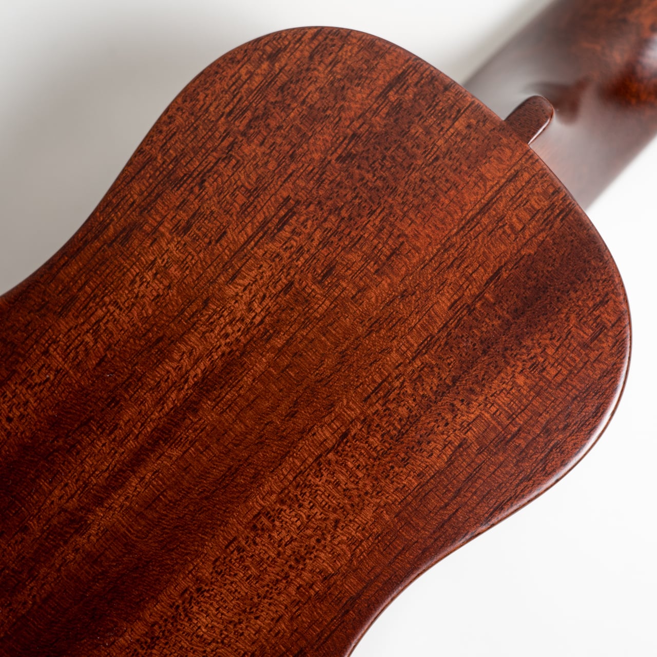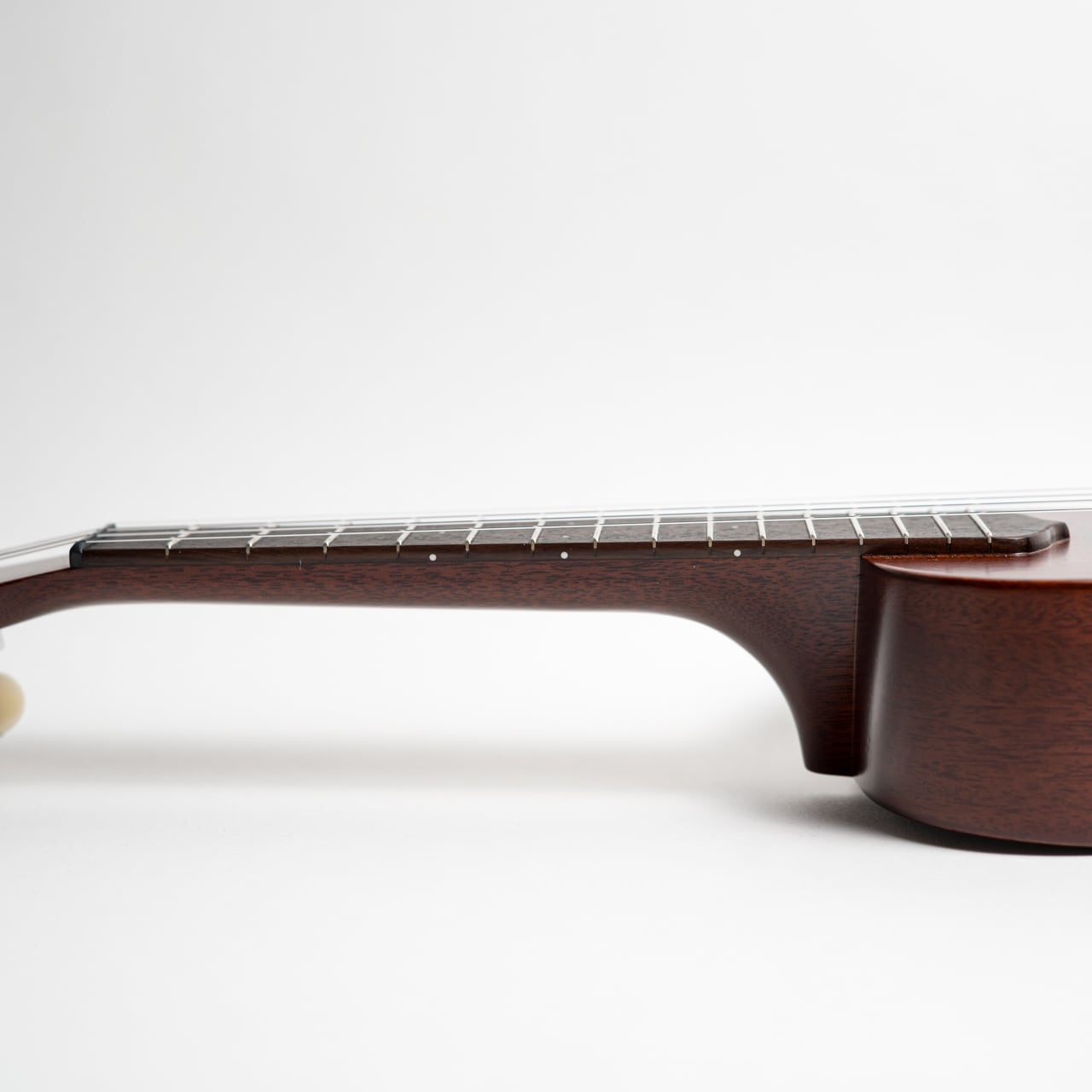 D0M+は、ボディ材にフィジー産のオオバマホガニーを使用したモデルです。ボディ材以外の仕様は標準モデルのD0Mと全く同じですので持った感じや弾きやすさは同等。セーハのしやすさ、弾きやすさについてはかなり自信があります。