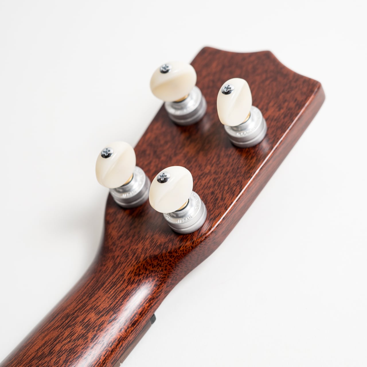 ◎使い勝手を重視して、チューニングが快適なゴトーUPTペグを搭載。見た目や重量を考えてウェーバリーのフリクションやペグヘッズも候補にあがりましたが、コストと使いやすさを考えるとこのモデルにはUPTがベストと判断しました。