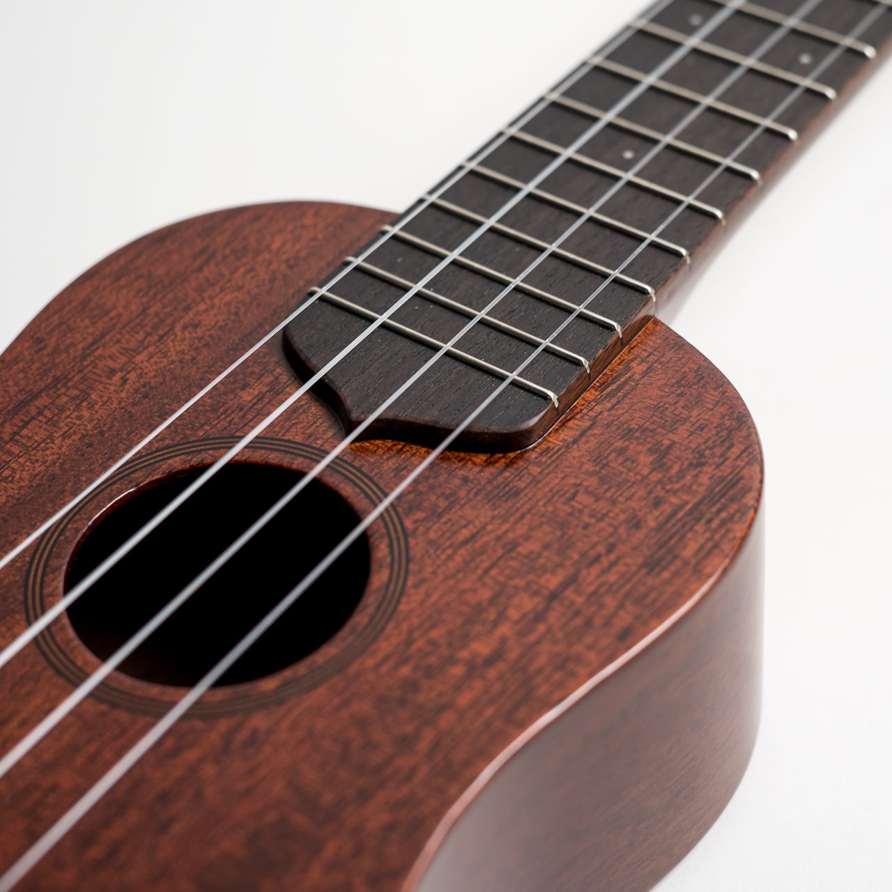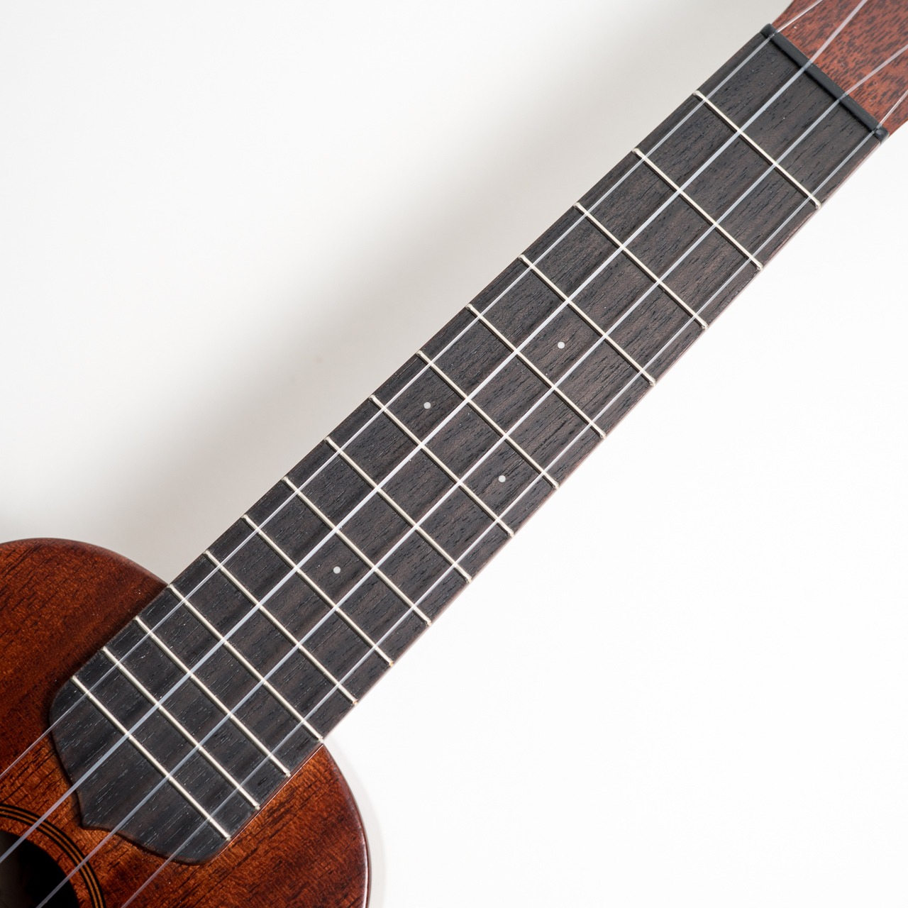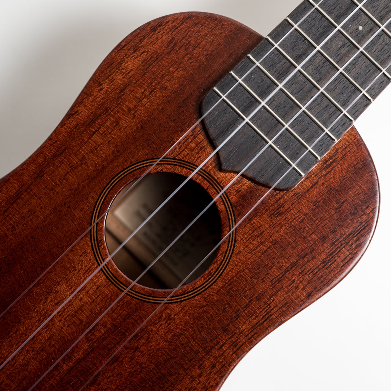 マホガニーのソプラノウクレレらしいコロコロとした素朴な音色で、低音域がすっきりしていて明るく軽やかな音質が特徴です(太い音だったり、迫力のある低音を求める方には予算が許せばSeilenやSUMI工房といった個人製作家さんの楽器をおすすめします)