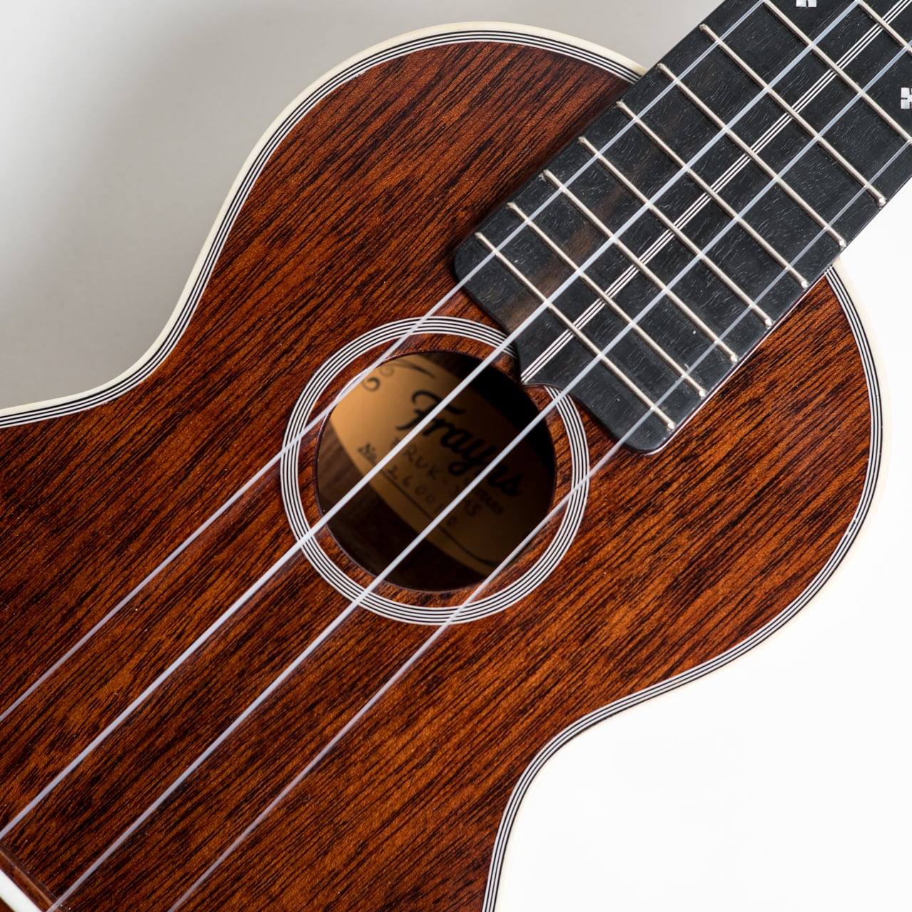 マホガニーらしい優しくふくよかな鳴り、豊かな音量、厚みのある低音、粒だちの良い発音、コロコロと素朴で温かみのある音色。Fraynsのウクレレはネックが握りやすく、とても弾きやすいです。