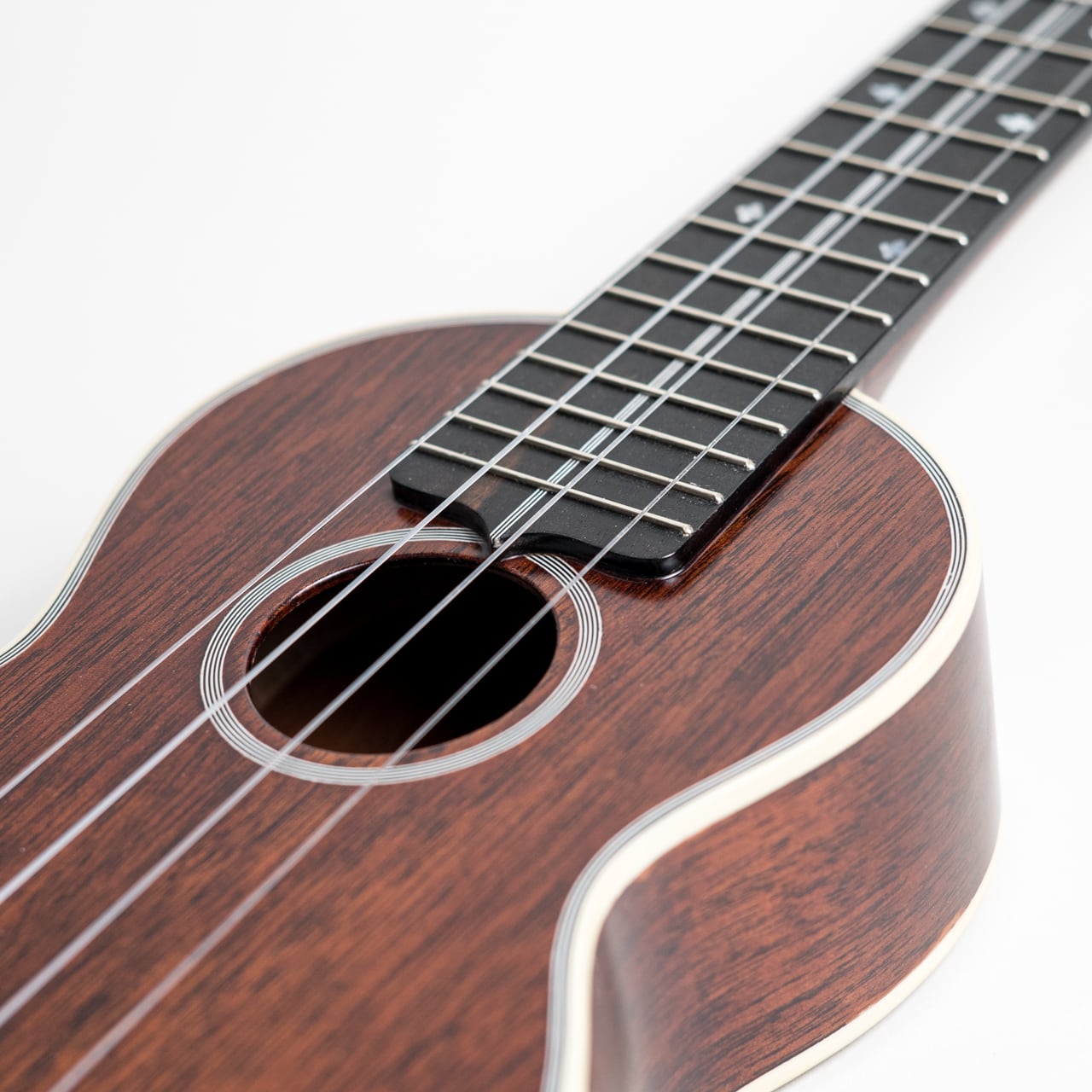 ヴィンテージライクなビジュアルながら、演奏性・操作性はしっかりと現代的に使いやすくアップデートされています。ジャカジャカ弾いて良し、しっとりとソロスタイルも良しのソプラノウクレレです。