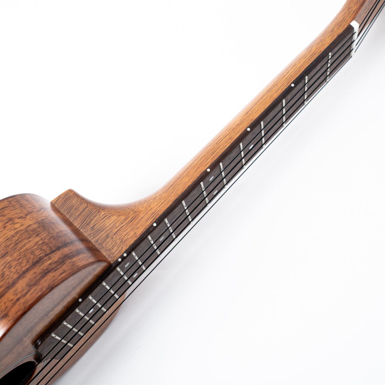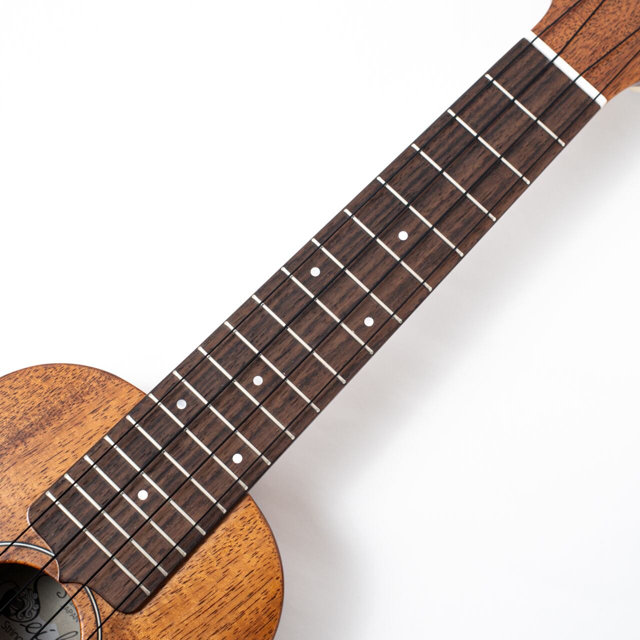 ハワインアコア特有のしっかりと芯がありながらもカラッとした抜けの良いサウンドが楽しめます。さらにセイレン独自の味付けとしてブリッジをボディエンド側に寄せることで、このサイズのウクレレとしては驚くべき音量とサスティーンを実現しています。ソプラノサイズ、ソプラノスケールでありながら、ソロウクレレでも充分に満足のいく音色が出せるのが本モデルの特徴です。