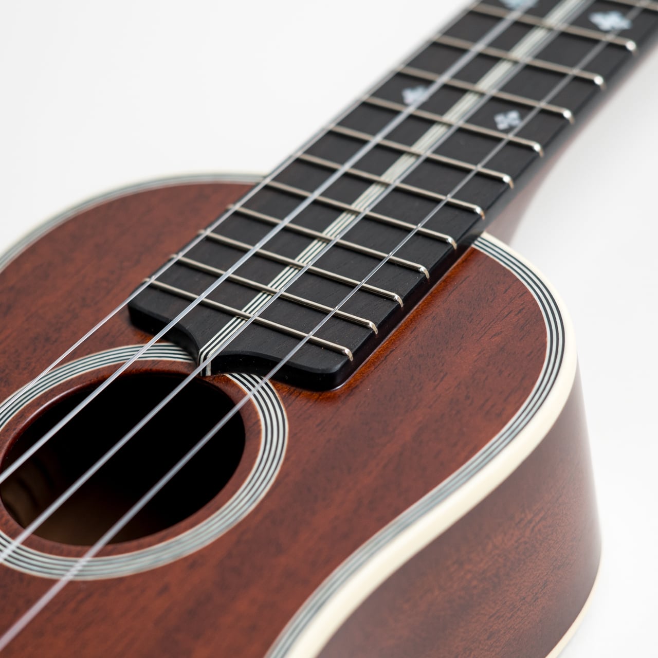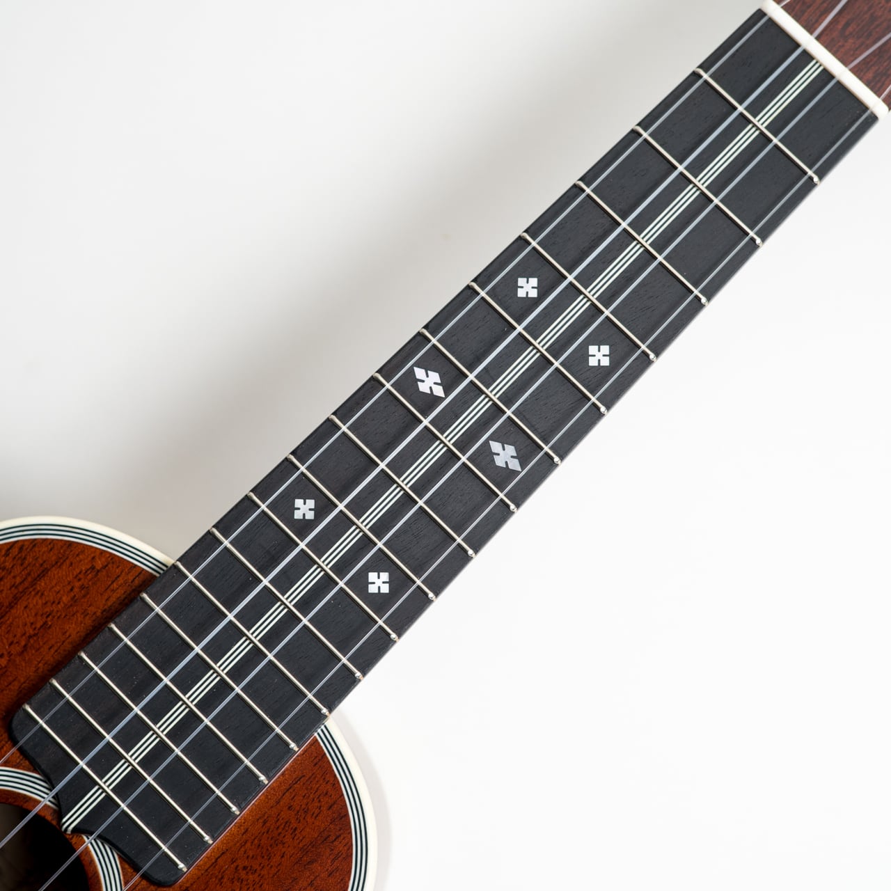 弦はこのウクレレの魅力を最大限に引き出すため、特別に組み合わせたオリジナルゲージのフロロカーボン弦を採用しています。細めなので弦を押さえやすく(=弾きやすい)、楽器がよく響きます。
