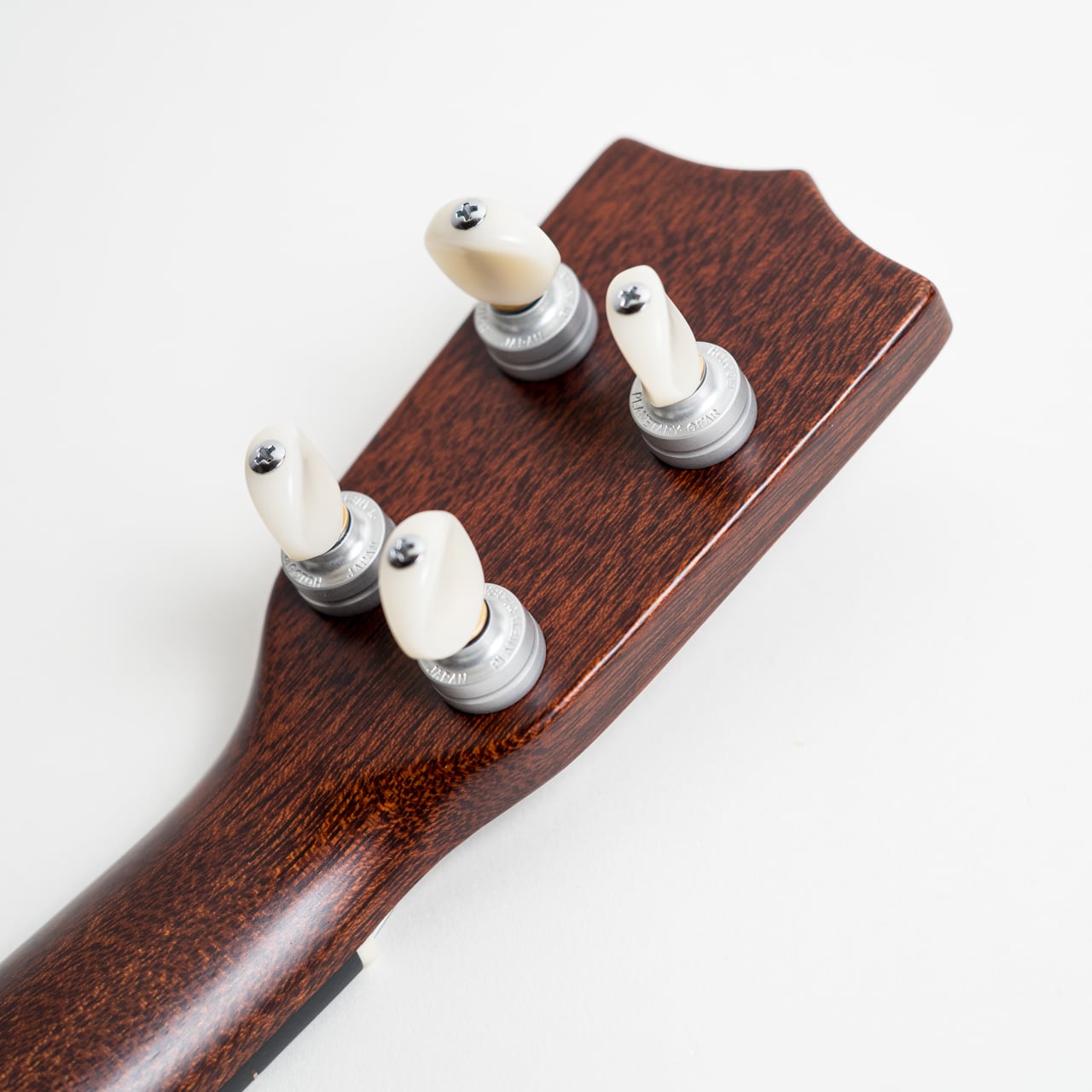 ◎使い勝手を重視して、チューニングが快適なゴトーUPTペグを搭載。見た目や重量を考えてウェーバリーのフリクションやペグヘッズも候補にあがりましたが、コストと使いやすさを考えるとこのモデルにはUPTがベストと判断しました。